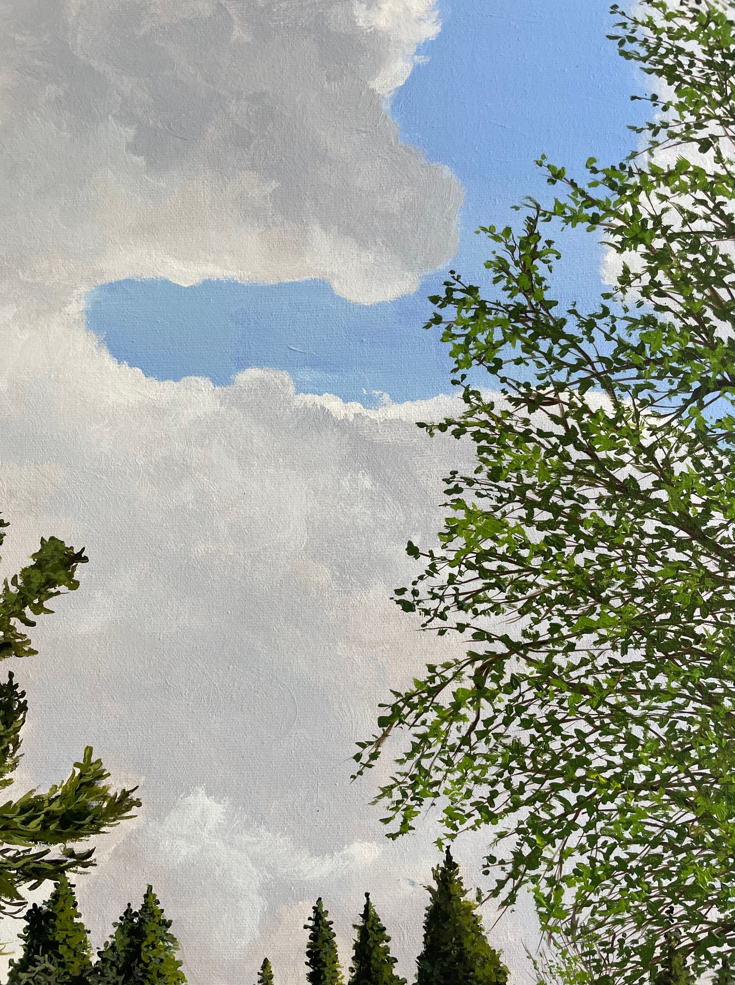 Painting continues around the sides. Matte varnish finish. 30″ x 40″ x 1.5″